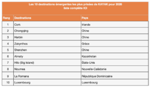 Cette évolution se reflète clairement dans le classement des 10 destinations émergentes pour 2026 établi par KAYAK, dominé par des villes secondaires, des régions méconnues et des destinations moins saturées en Europe, en Asie, en Amérique et au-delà.