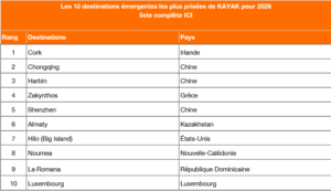 Cette évolution se reflète clairement dans le classement des 10 destinations émergentes pour 2026 établi par KAYAK, dominé par des villes secondaires, des régions méconnues et des destinations moins saturées en Europe, en Asie, en Amérique et au-delà. De Cork (Irlande) en tête de liste à Chongqing, Harbin et Shenzhen en Chine, en passant par La Romana (République dominicaine) et même Luxembourg, le classement met en évidence l’engouement croissant des voyageurs pour les lieux qui offrent une expérience plus locale, plus flexible et moins fréquentée.