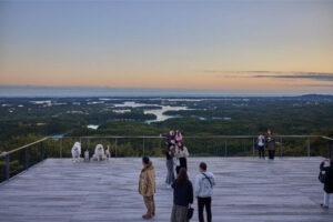 Cet espace, à la fois paysager et contemplatif, est conçu pour inviter les visiteurs à admirer le mariage harmonieux entre ville et nature. C’est au crépuscule que la magie atteint son apogée : la vue se transforme en une mer étincelante de lumières, surnommée au Japon « la vue nocturne à 10 millions de dollars » pour sa splendeur incomparable.
