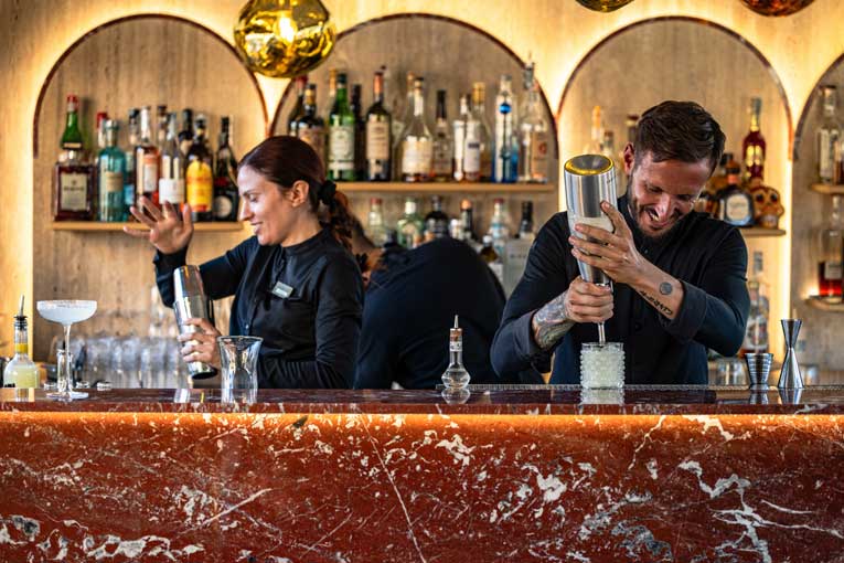 Rénovée avec soin en septembre dernier, La Terrazza del Cesàri n’est pas qu’un simple bar d’hôtel, c’est une destination à part entière. Dès le petit-déjeuner, l’ambiance y est feutrée et lumineuse. En fin de journée, le lieu se métamorphose pour accueillir le célèbre aperitivo italien. Face au coucher du soleil, les clients savourent des cocktails créations ou des vins locaux, accompagnés de spécialités typiques comme les pinsas romaines et les bruschettas croustillantes.